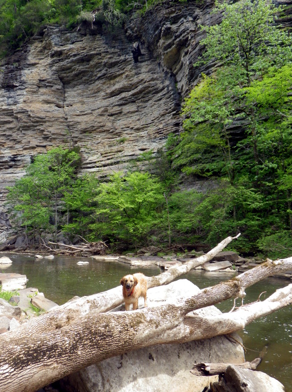 It’s the last week of grad school, a month from now I’ll be somewhere else, exploring somewhere else. So for now, I’ll venture farther downstream than I’ve been before, deepening limestone cliffs sloughing dark wedges of fossilized clams, dripping with ferns and studded with coral bells.